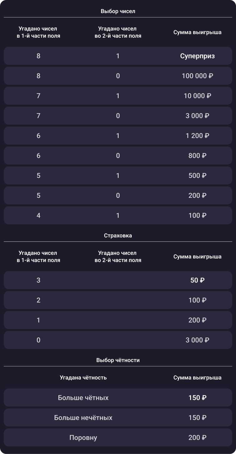 В «Рапидо Драйв» в способе игры «Страховка» с 12 мая приз в 30 раз больше. Выиграйте 3000 ₽, не угадав ни одного числа в первом поле. Играйте и забирайте до 19 мая!