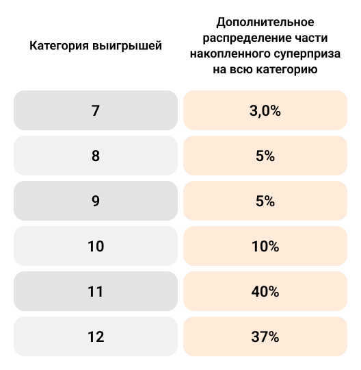 Фраза «Распределим 120 000 000 ₽» означает, что в каждом из тиражей лотереи «ВГЛ 3 Спорт», алгоритм определения выигрышей № 6, розыгрыши которых состоятся с 12:00:00 мск 11.06.2025 по 20:00:00 мск 16.06.2025 (включительно), будет увеличена сумма сформированного призового фонда на 3 000 000 рублей, если в указанных тиражах не будет победителя в 1-й категории выигрышей. Указанная сумма будет распределена между победителями с 7-й по 12-ю категории выигрышей. В случае, если в одном из тиражей указанного периода будет определён победитель (победители) в 1-й категории выигрышей, то дальнейшее увеличение суммы сформированного призового фонда осуществляется только в одном тираже, следующем за тиражом, в котором определён победитель (победители) в первой категории выигрышей. Во всех остальных последующих тиражах увеличение суммы сформированного призового фонда не происходит.