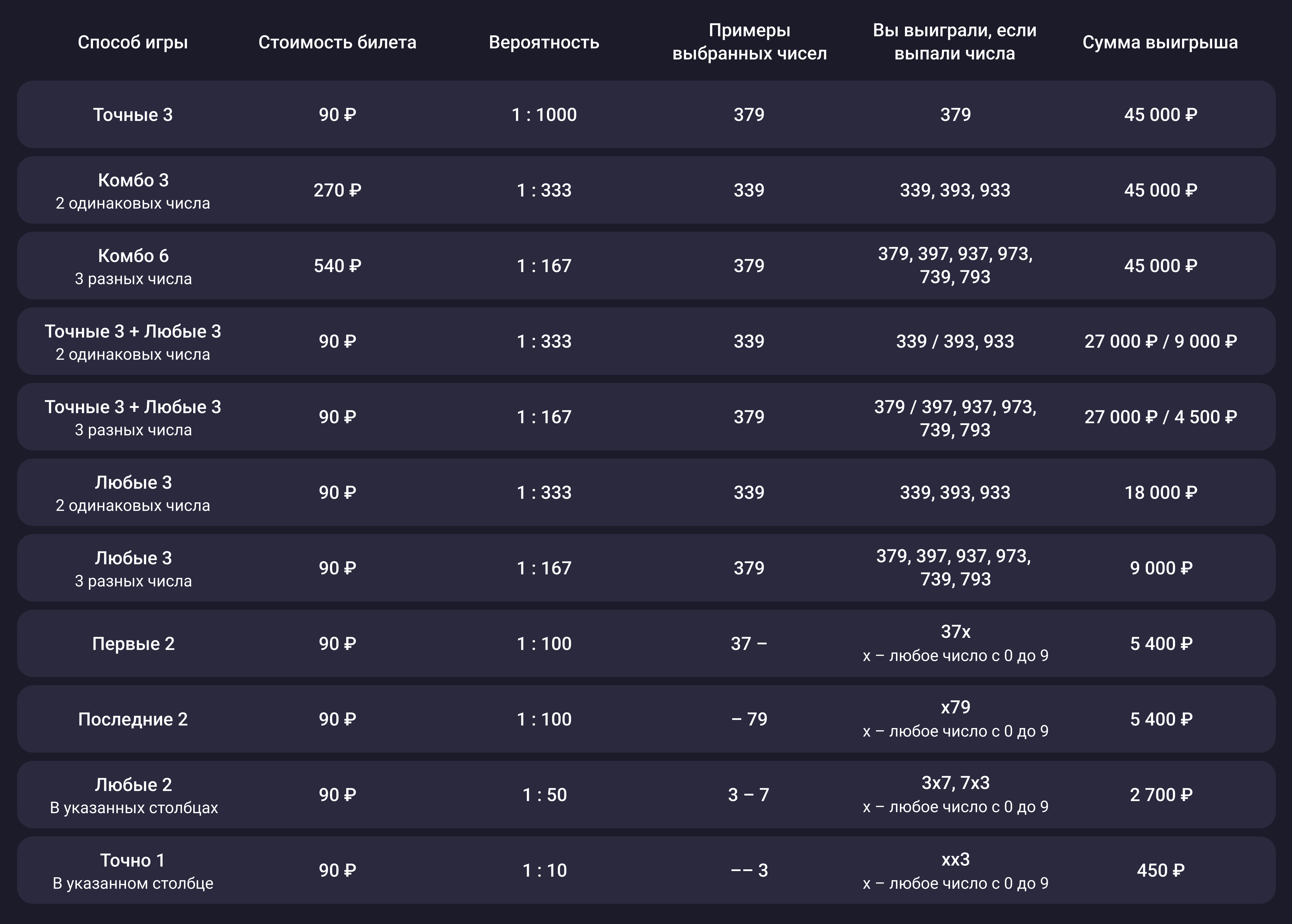 С 30 июня изменились выигрыши в нескольких категориях лотереи «Топ-3». А суперприз по-прежнему 10 000 000 ₽. Выберите 1, 2 или 3 числа и вступайте в игру!