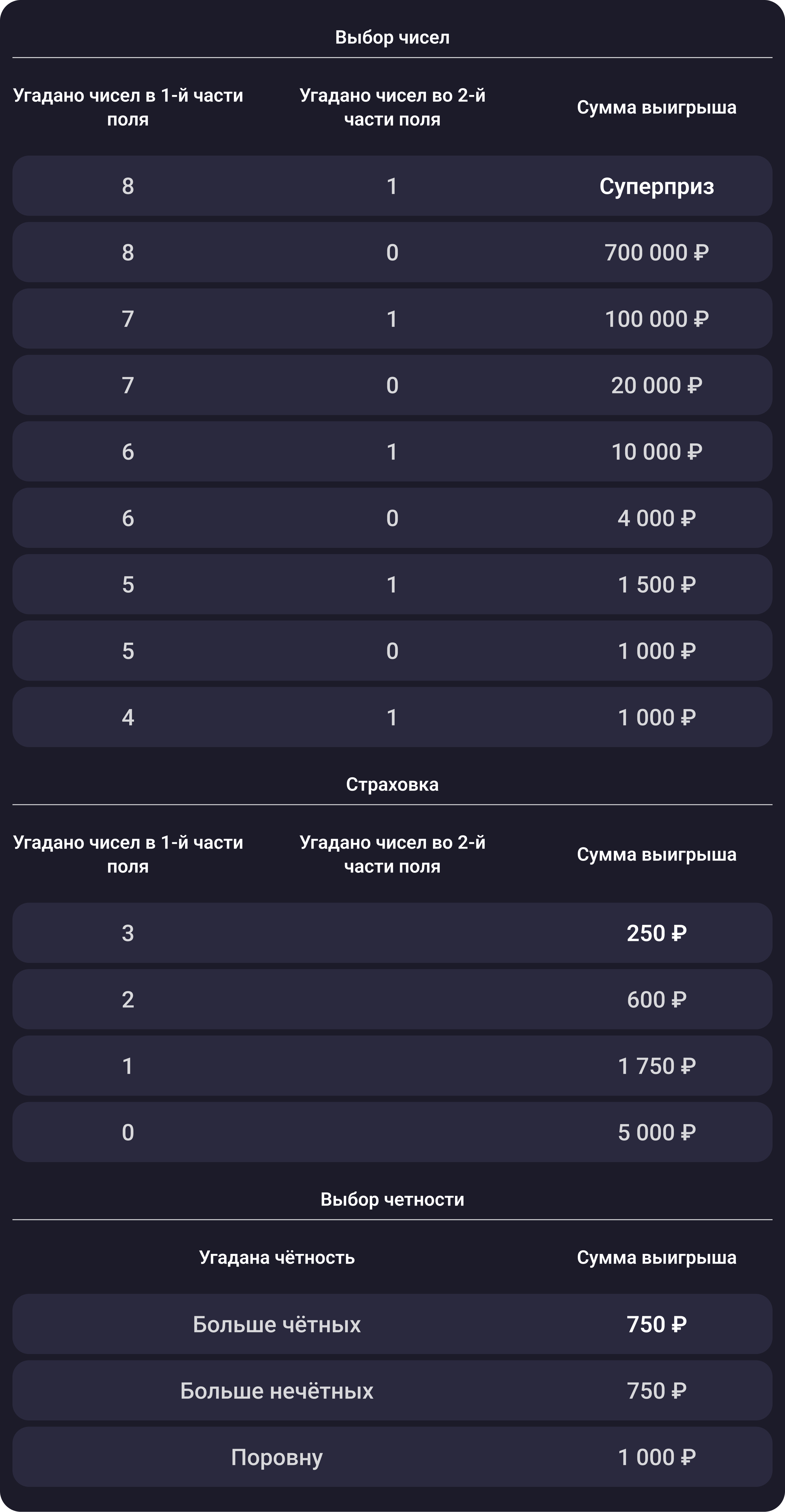 Полную информацию об изменении выигрышей смотрите в таблице: