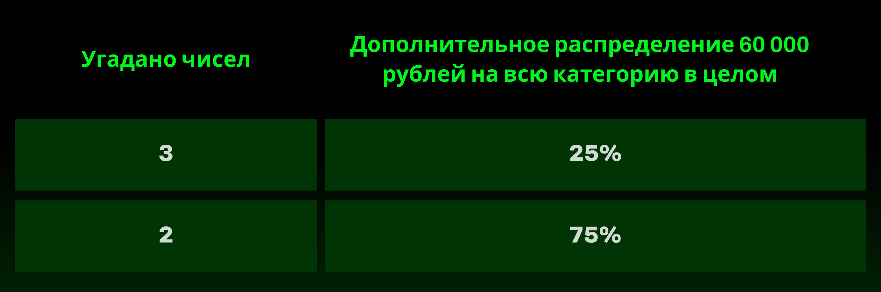 Подробнее о распределении по категориям выигрышей смотрите в таблице.