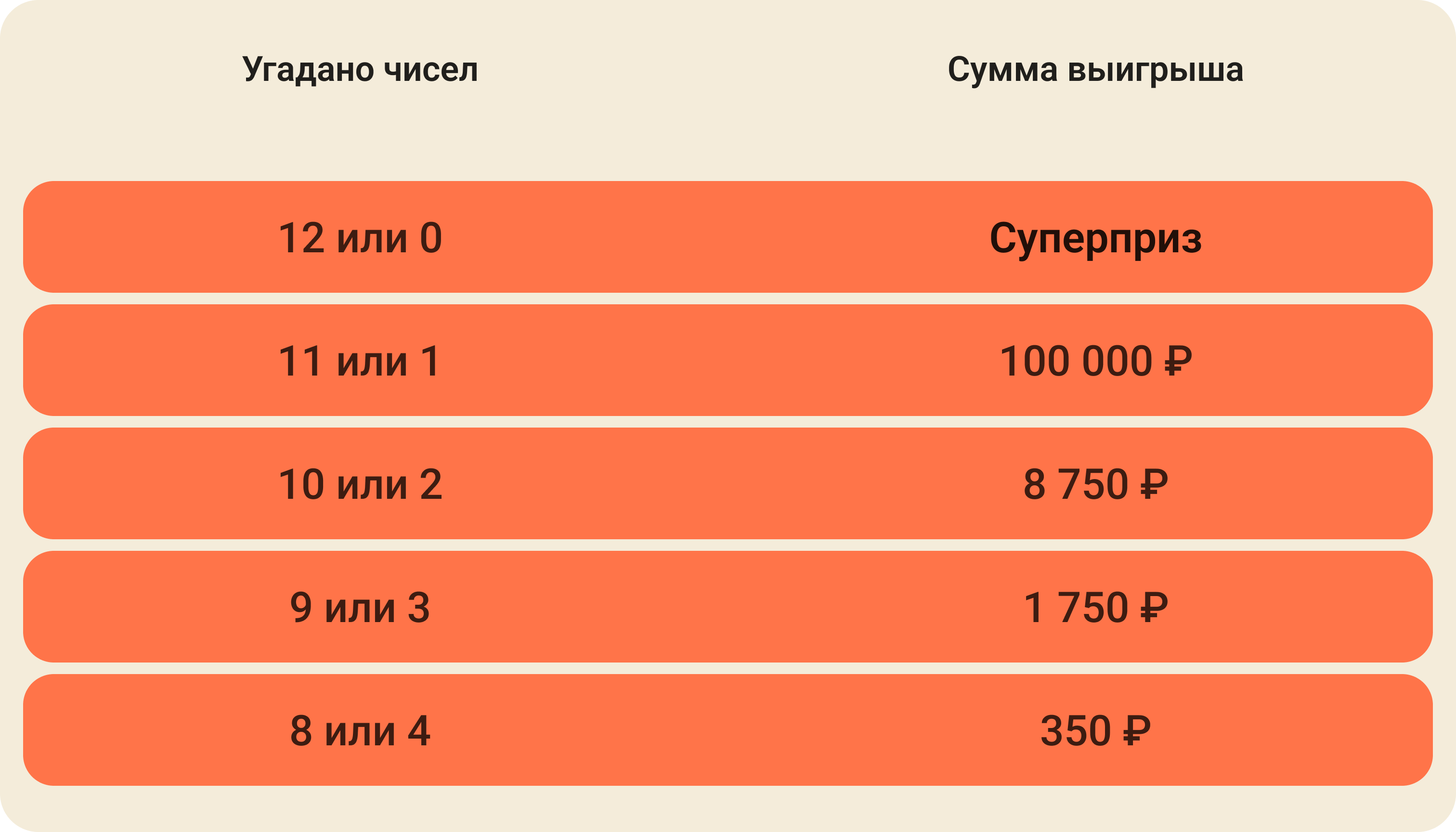 Полную информацию об изменении выигрышей смотрите в таблице: