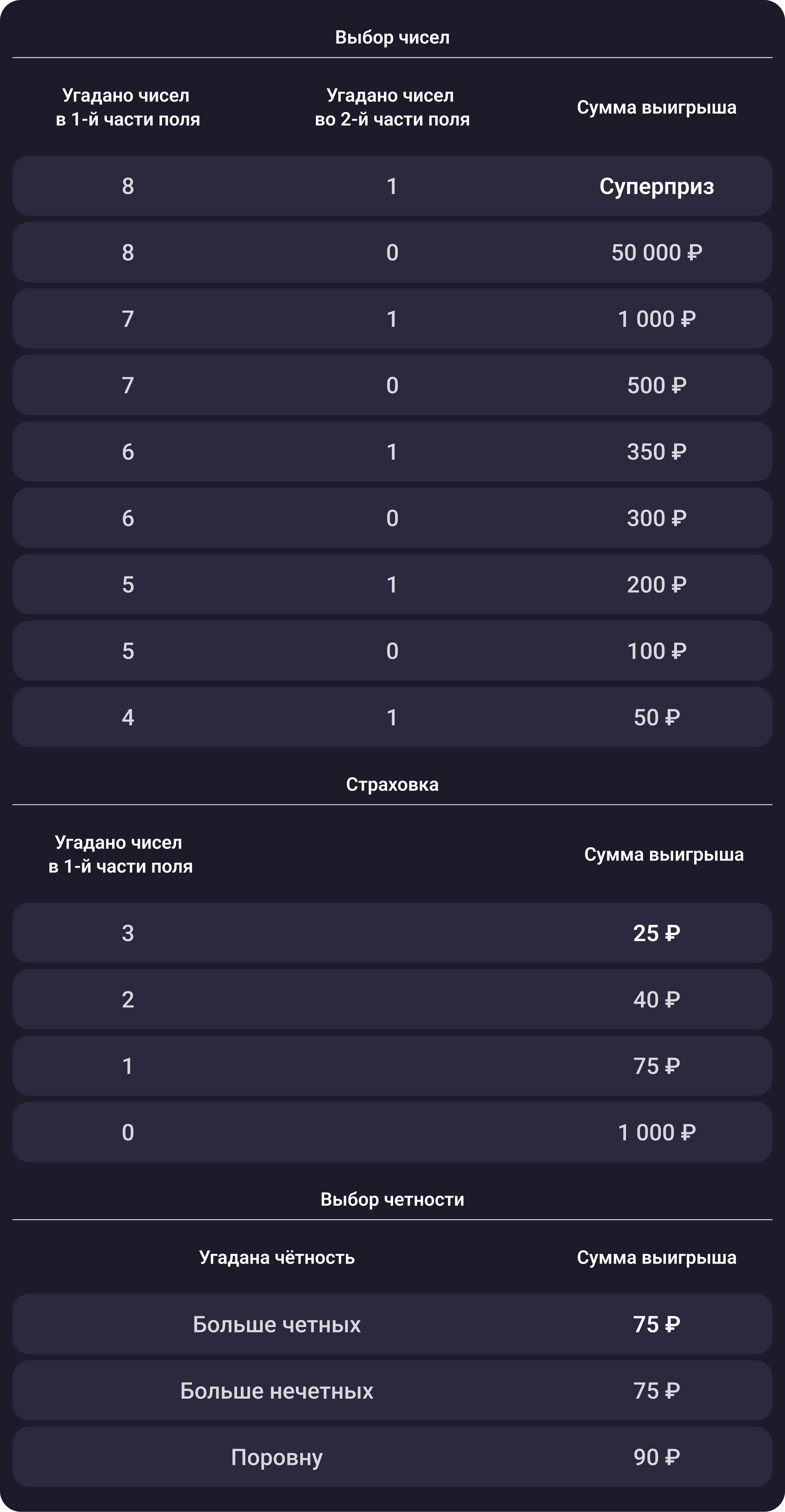 С 11:20 мск 28 июля в «Рапидо Старт» можно выиграть сразу в 20 раз больше — 1000 ₽ за 0 угаданных чисел в способе игры «Страховка». Билеты от 50 ₽, а суперприз от 300 000 ₽. Успейте забрать максимум!