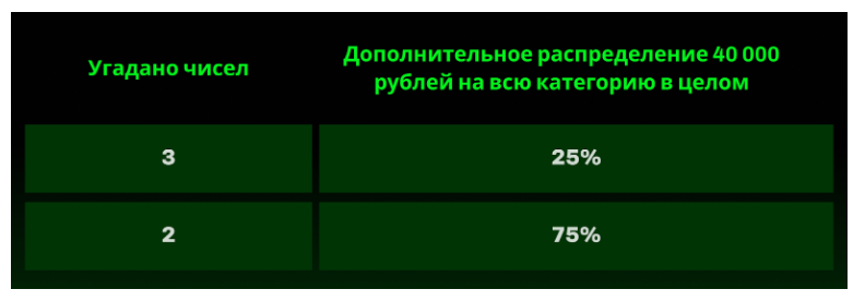 Подробнее о распределении по категориям выигрышей смотрите в таблице.