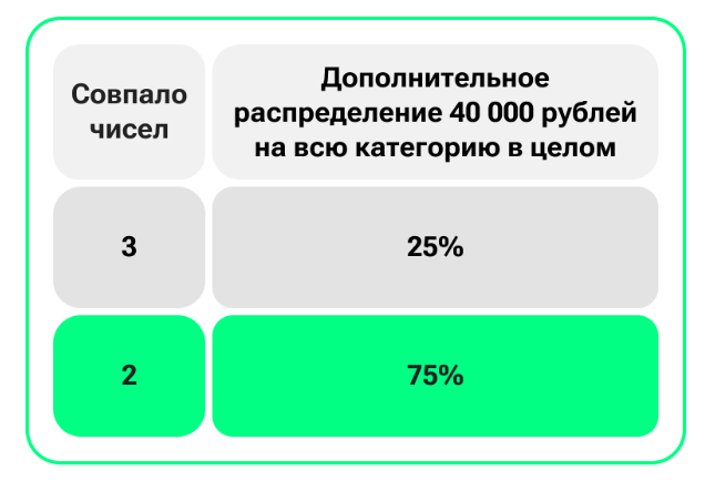 Подробнее о распределении по категориям выигрышей смотрите в таблице.