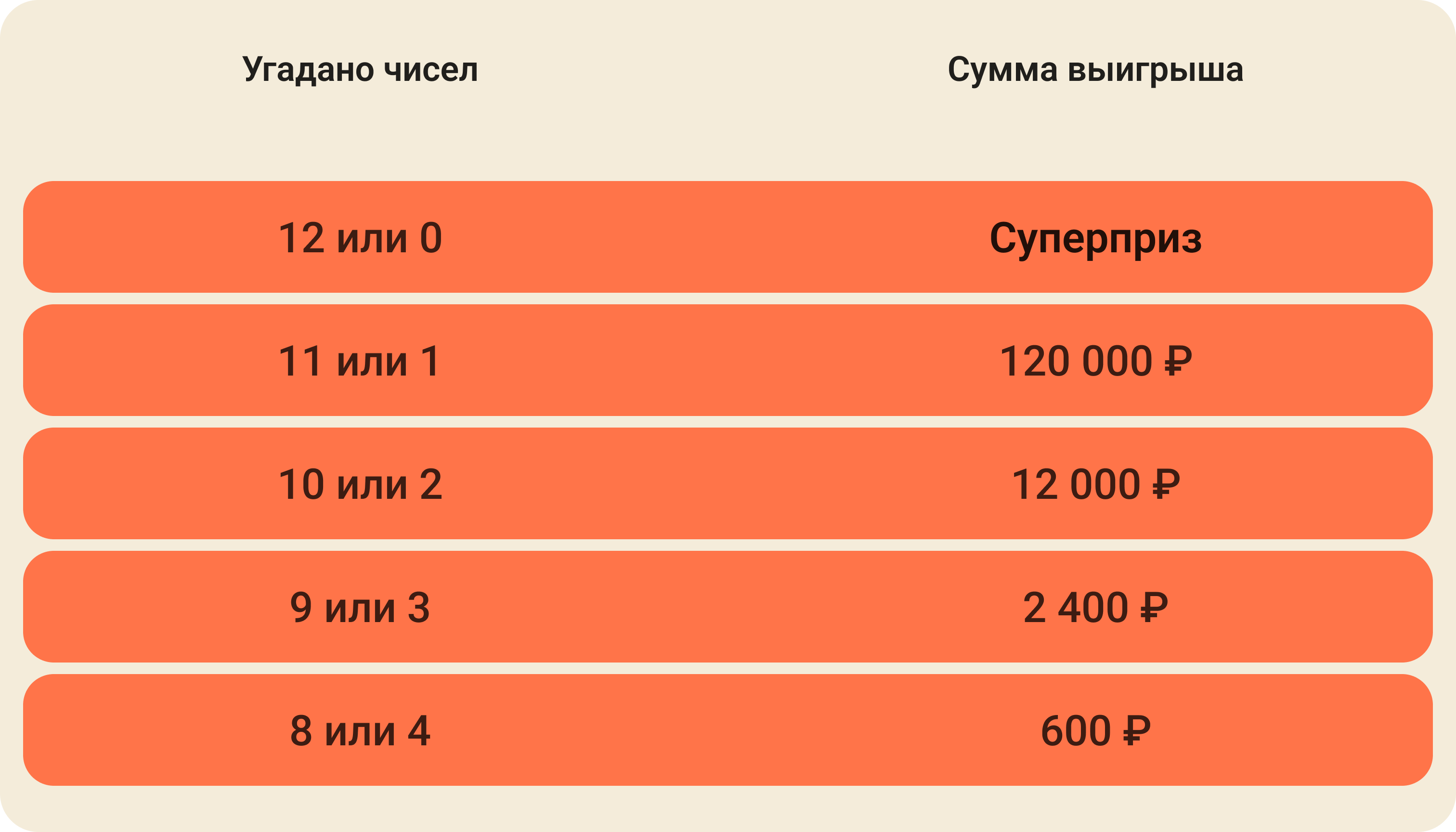 «Забава от Русского лото», «Всё или ничего» и «Карта удачи» являются равнозначными коммерческими наименованиями лотереи «ВГТЛ-2», алгоритм определения выигрышей № 9.