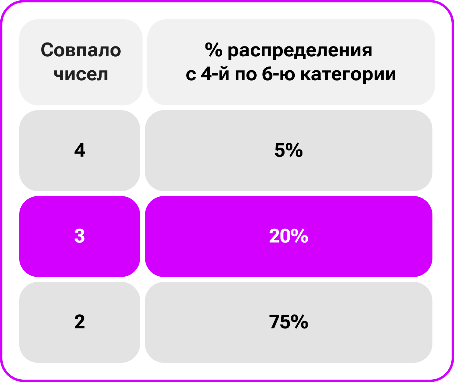 Подробнее о распределении по категориям выигрышей смотрите в таблице.
