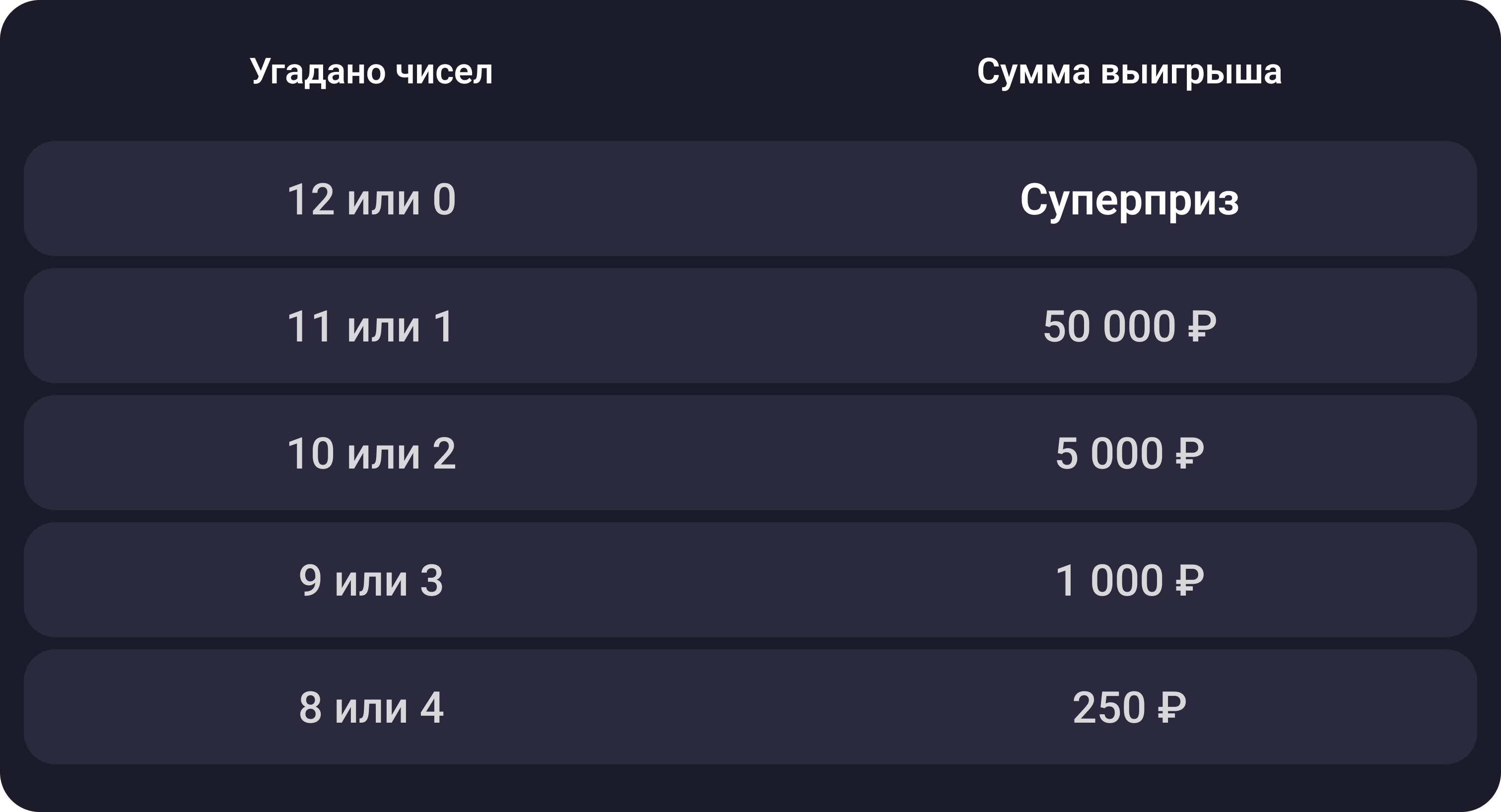 С 4 октября стоимость билета во «Всё или ничего» — от 250 ₽. Угадайте все числа или ни одного и выиграйте миллионы. Пора за билетами!