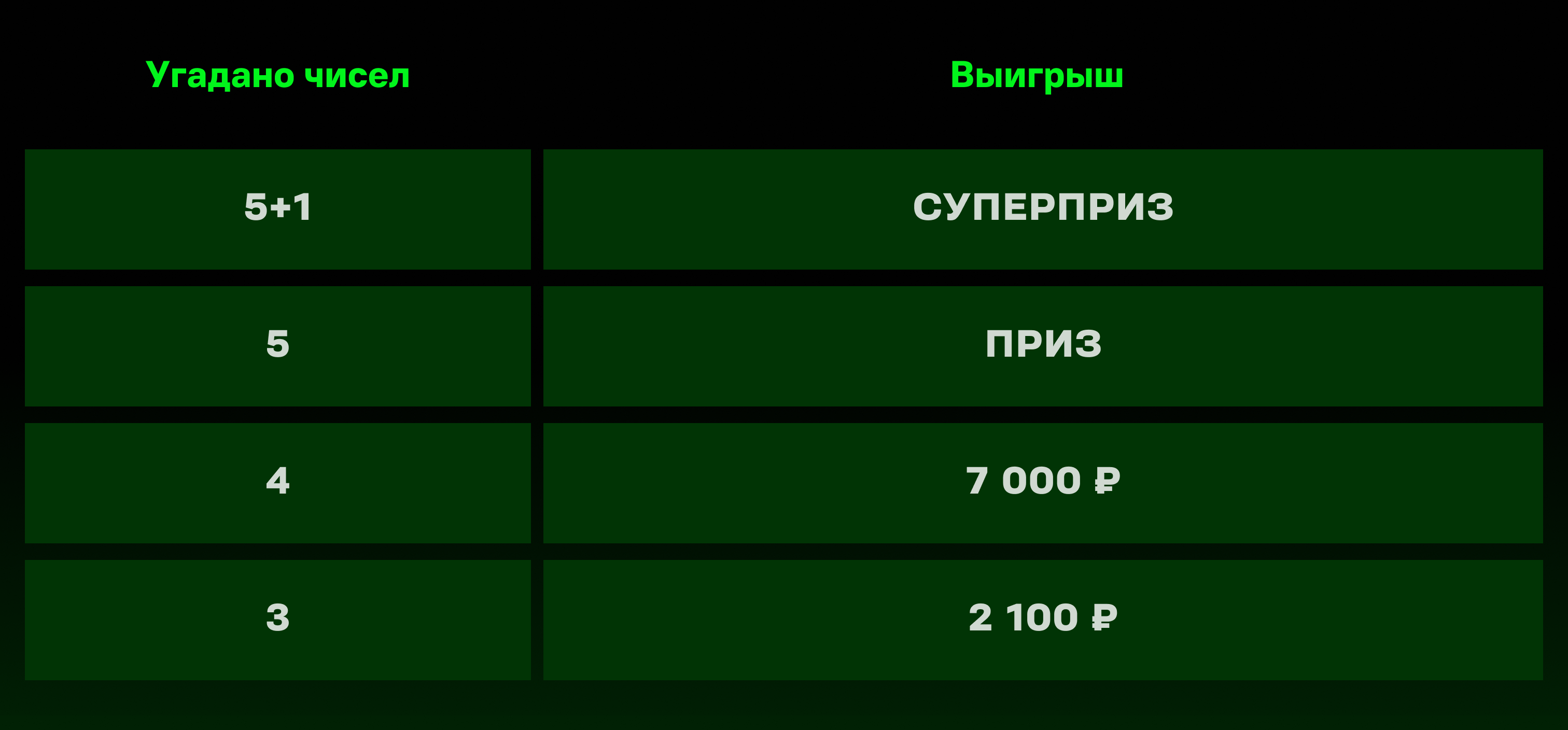 С 12:00 мск 6 октября минимальные выигрыши в «клаве» увеличены в 30 раз — теперь от 2100 ₽. А суперприз лотереи — от 3 000 000 ₽. Скорее жмите на клавиши и выигрывайте больше до 11:45 мск 13 октября!