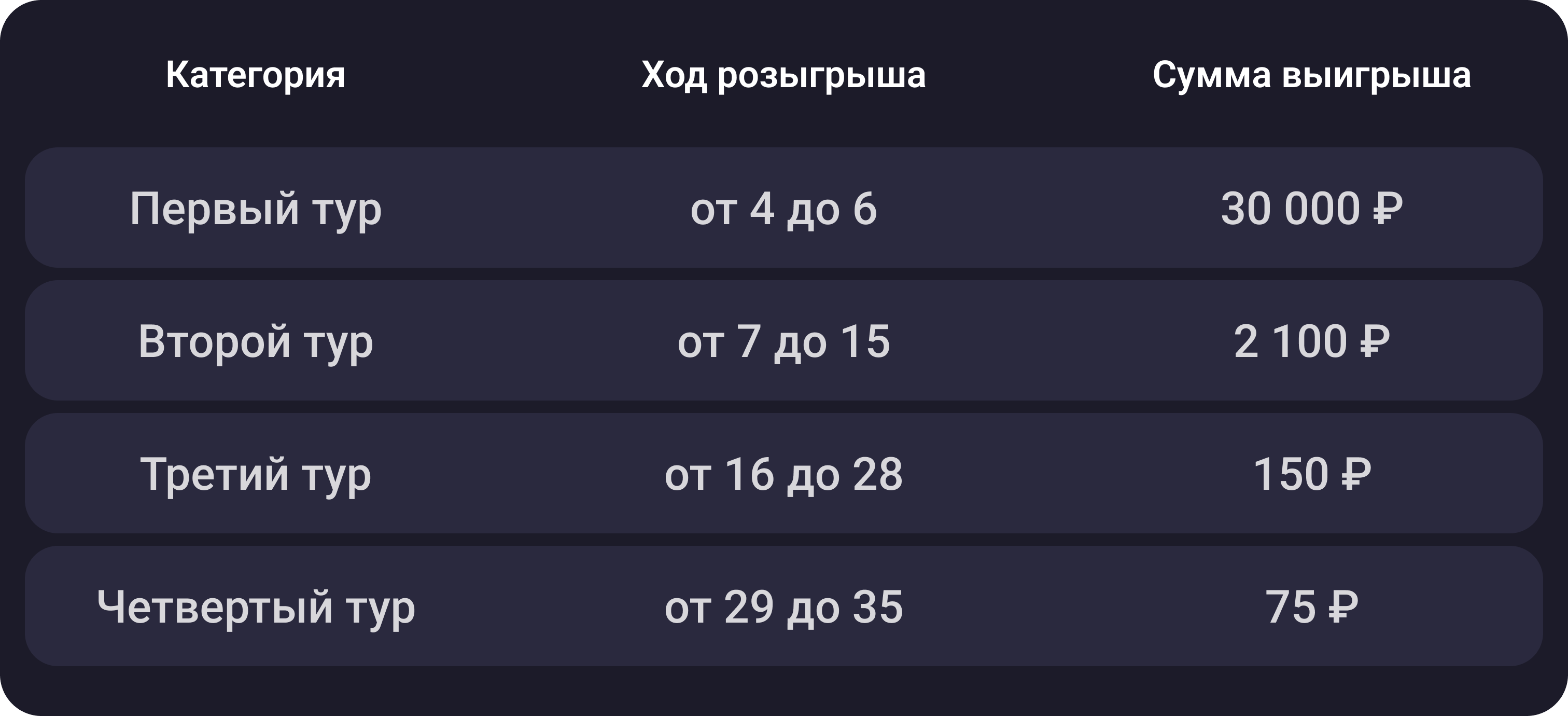 С 20:47 мск 17 октября в «Рокетбинго» изменится цена билета — сыграть можно будет от 75 ₽. Сейчас в лотерее Джекпот от 100 000 000 ₽. Чем больше билетов, тем больше шансов стать мультимиллионером!