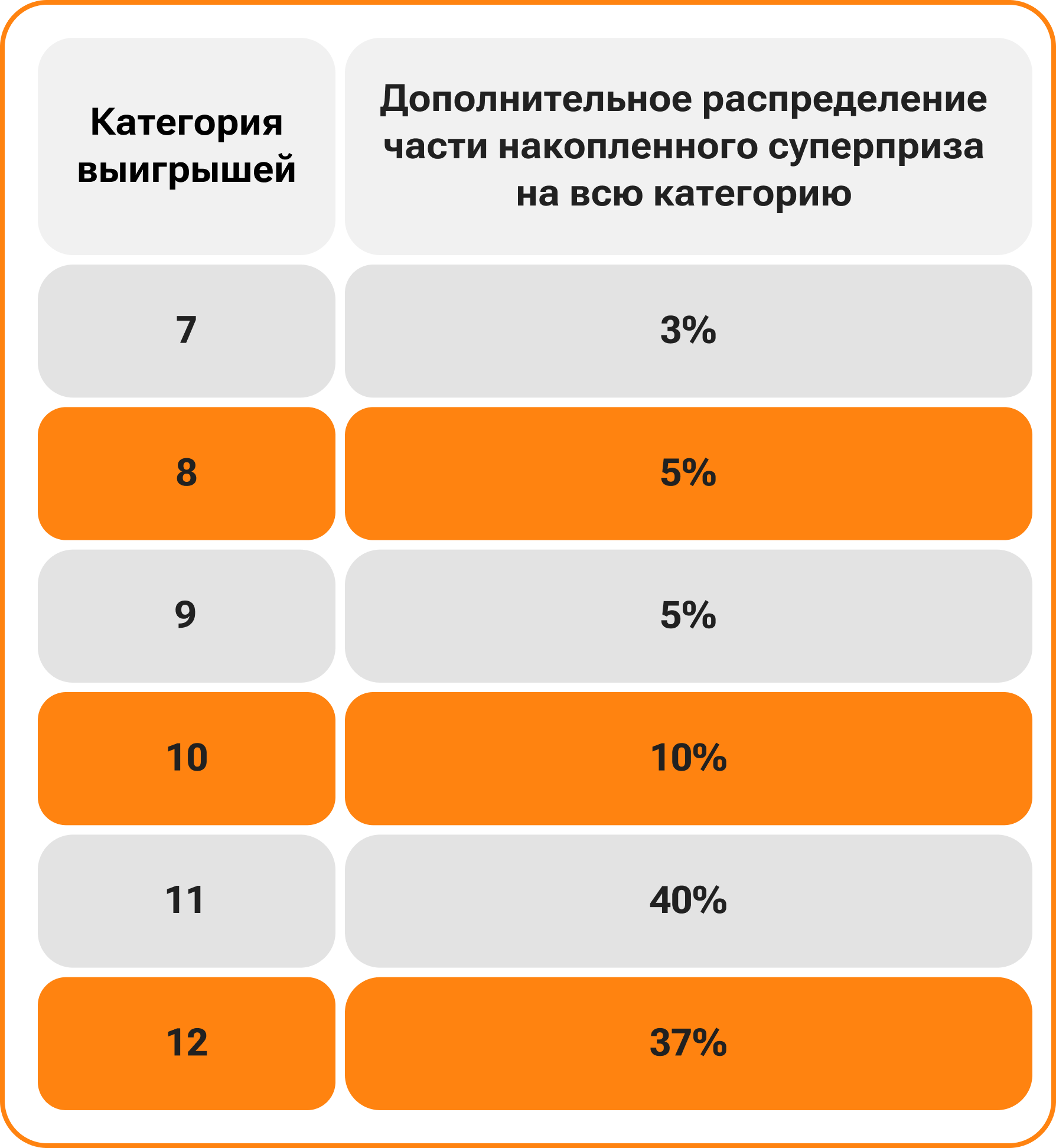 Подробнее о распределении по категориям выигрышей смотрите в таблице.