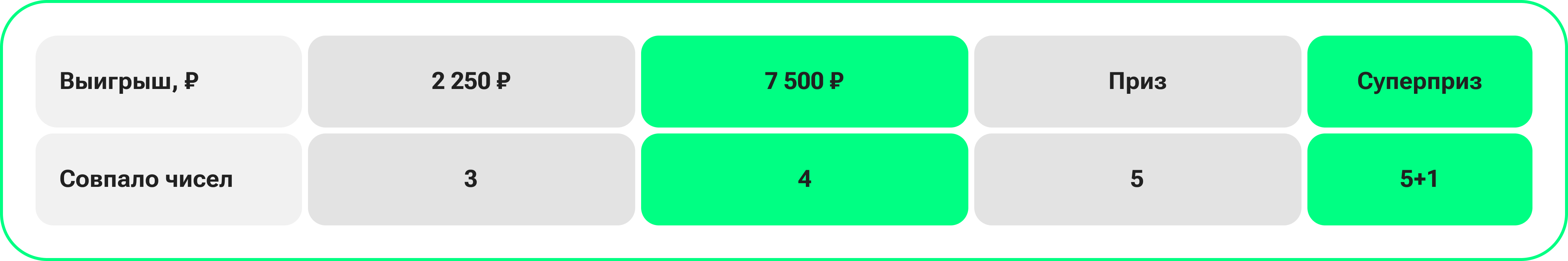 Не пропустите акцию в «Спортлото «5 из 36»! С 12:00 мск 3 ноября до 11:45 мск 10 ноября минимальные выигрыши в 30 раз больше — от 2250 ₽. Ещё вы можете забрать сразу два приза от 1 000 000 ₽. Присоединяйтесь к чемпионам!