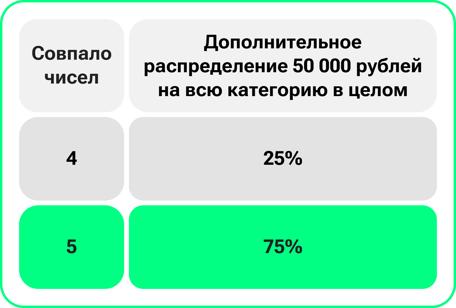 Подробнее о распределении по категориям выигрышей смотрите в таблице.