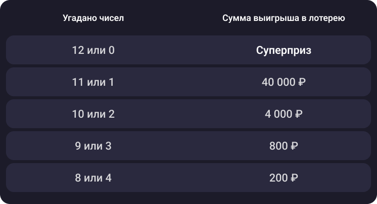 С 00:00 мск 31 декабря изменится цена билета во «Всё или ничего» — играйте от 200 ₽. Победителя ждёт суперприз от 7 000 000 ₽. Угадайте 12 чисел или ни одного — и он ваш!
