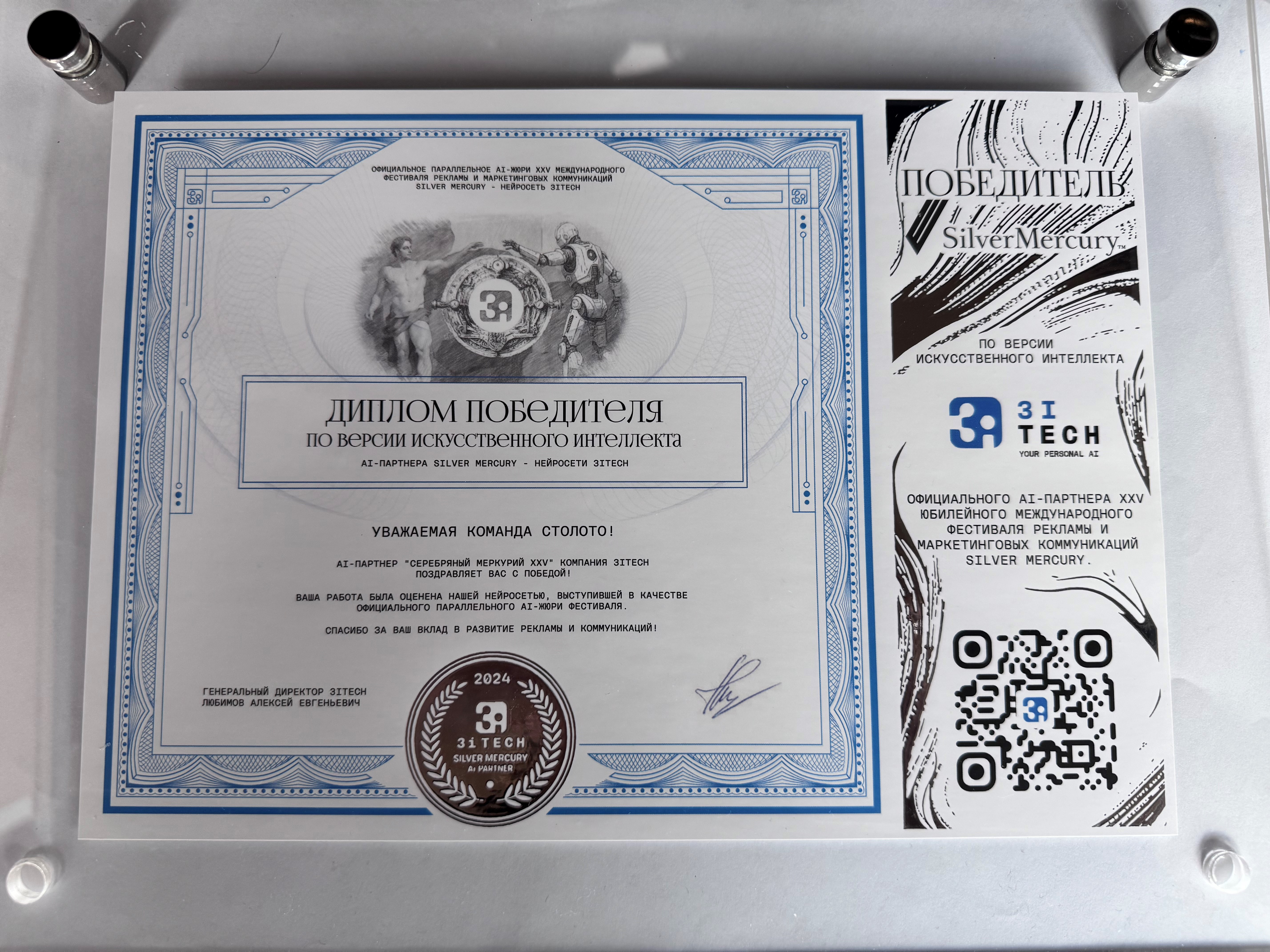 Искусственный интеллект 3iTech — официальный AI-партнёр XXV международного фестиваля Silver Mercury — 2024 — наградил PR-кампанию «Новогодний миллиард» серебряным дипломом.