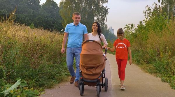 Семья Жирновых: Юрий, Анна, старшая дочь Ксения и младшая Анастасия (в коляске)