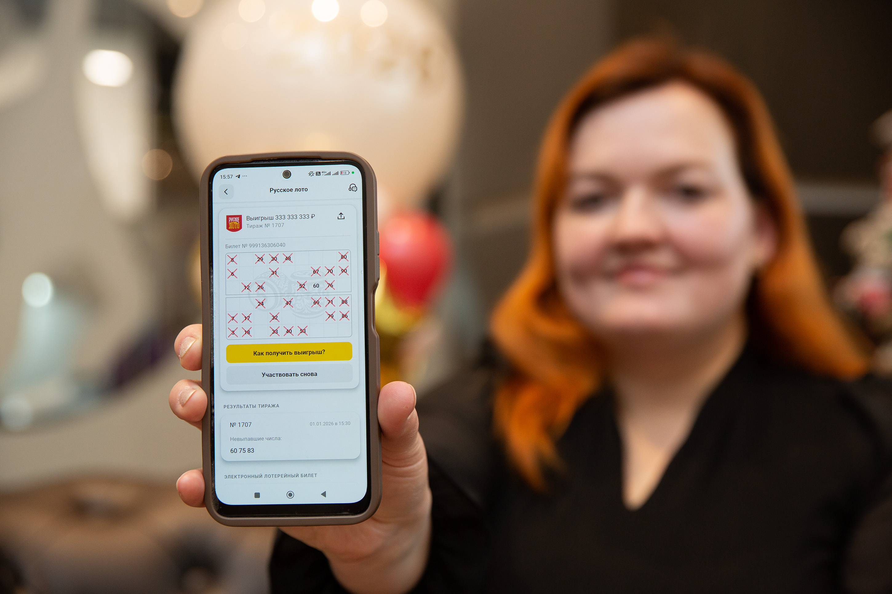 Одним из четырёх лотерейных мультимиллионеров «Новогоднего миллиарда» — 2026 от «Русского лото», выигравшим 333 333 333 рубля, стала молодая мама, педагог-психолог из небольшого посёлка городского типа Свердловской области Наталия Лохматова. Благодаря тому, что на 31 ходу в одном из полей её билета совпали все 15 чисел с номерами вытянутых бочонков, Наталия оказалась в числе разделивших главный приз новогодних победителей.